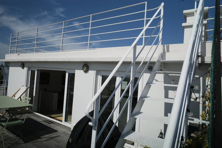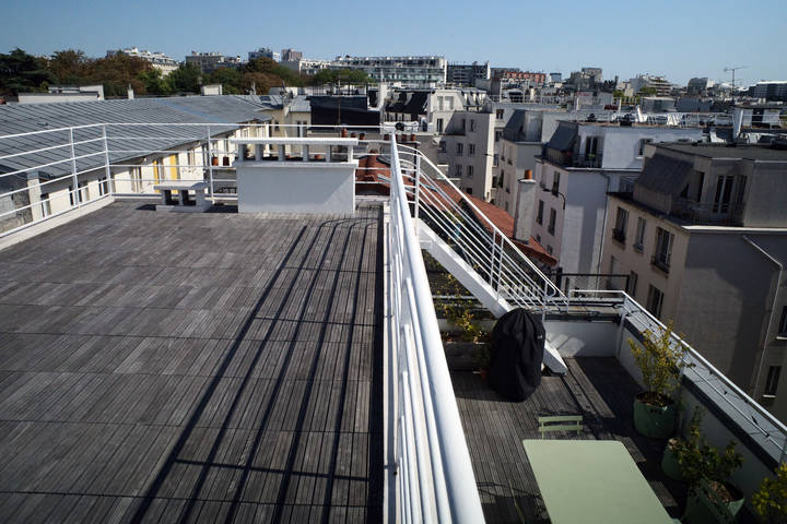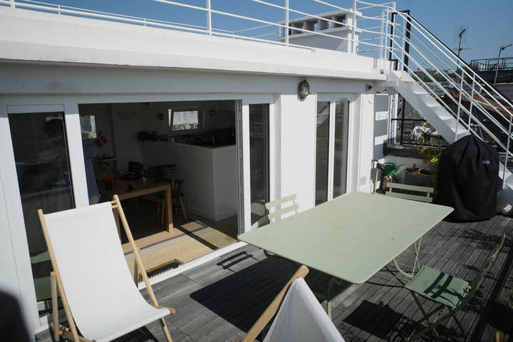 2 terrasses sur 2 niveaux : 40 m2 + 60 m2, avec une salle abritée de 30 m2.